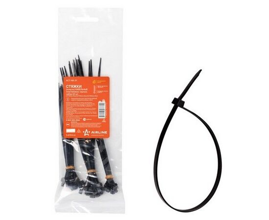 Стяжки (хомуты) кабельные, пласт. черн., набор 60шт.(2,5*100мм-20шт/3,6*150мм-20шт/3,6*200мм-20шт) (
