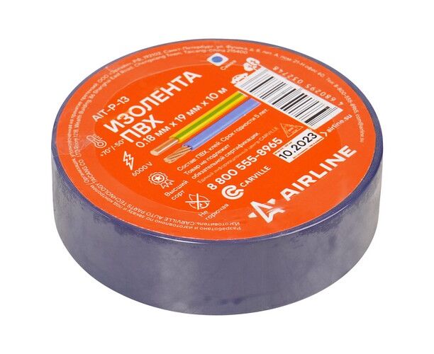Изолента AIRLINE изготавливается из поливинилхлоридной пленки с нанесённым на неё клеевым слоем и полностью соответствует ГОСТу-16214-86.