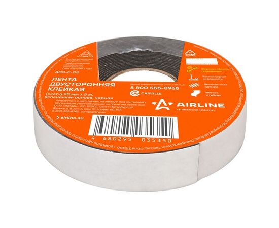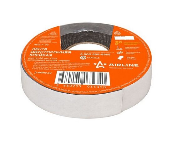 Лента двусторонняя клейкая на вспененной основе, которая представлена тремя моделями различными по ширине. Ленты предназначены для соединения предметов между собой из различных материалов не портя их сверлением отверстий или нанесением клея. Мягкая и гибкая вспененная основа обеспечивает надежное сцепление даже с неровными и структурированными поверхностям. Вспененная основа ленты обладает повышенной силой адгезии (сцепления), в качестве клеевой поверхности в них используется силикатный клей со специальной формулой. Двусторонняя лента AIRLINE незаменима при ремонтных работах в автомобиле, гараже, дома, или на даче.