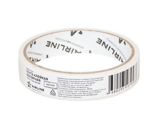 Лента клейкая малярная (скотч), 19 мм*10 м, белая (AAT-P-01)