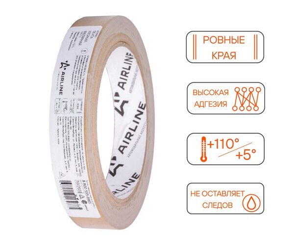 Лента клейкая малярная (скотч) термостойкая 110°C, 19 мм*40 м, коричневая (ADTP003)