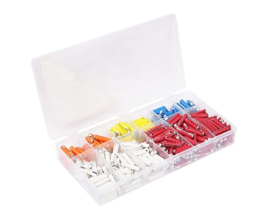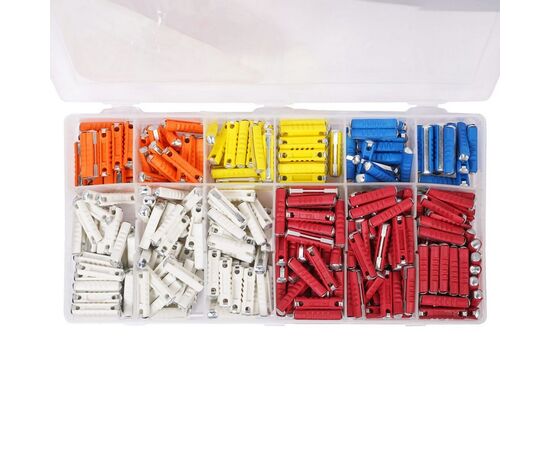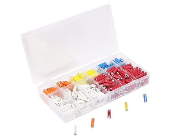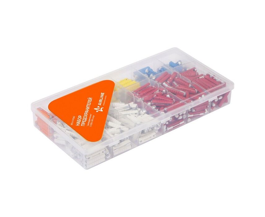 AIRLINE представляет набор предохранителей для электрических цепей транспортного средства. Предохранители имеют цилиндрическую форму, благодаря которой изделие легко устанавливается в систему автомобиля. Набор автомобильных предохранителей содержит 360 штук изделий четырех цветов. Номинальный ток предохранителей составляет от 5А до 25А. Изделия прошли многоуровневую проверку качества.