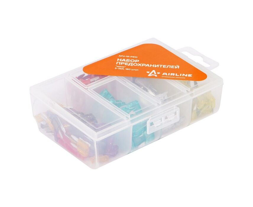 Автомобильные предохранители помогают своевременно определить поломку в электрической цепи транспортного средства. Данный комплект предохранителей содержит изделия категории «мини» в количестве 510 штук. Предохранители отличаются цветом и номинальным током, который варьируется от 5А до 35А. Также в комплект входит 2 экстрактора. Для хранения предохранителей предусмотрена пластиковая прозрачная коробка с фирменной маркировкой AIRLINE.