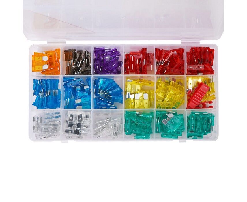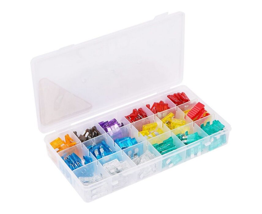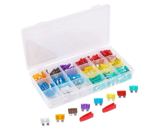 Данные предохранители категории «стандарт» широко используются во многих отечественных и зарубежных автомобилях. Предохранители имеют номинальный ток от 5А до 35А и 6 различных цветов окраски, помогающих лучше сориентироваться в неисправности автомобильной электрической цепи. В наборе содержится 180 автомобильных предохранителей.