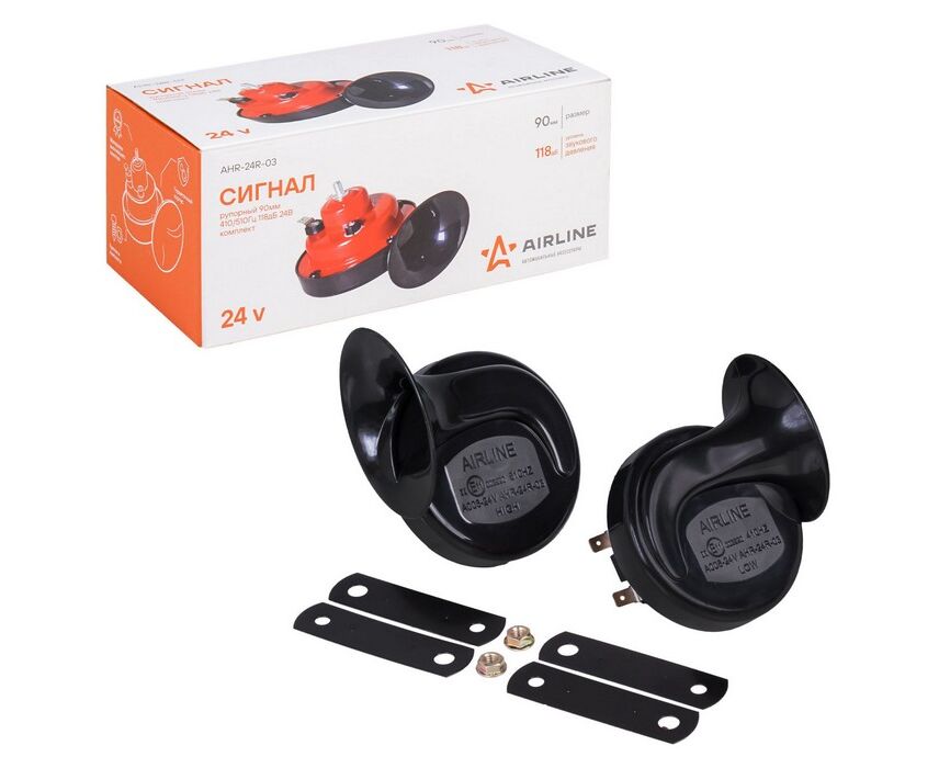 Сигнал звуковой рупорный 90мм 410/510Гц 118дБ 24В LOW/HIGH комплект (AHR-24R-03)