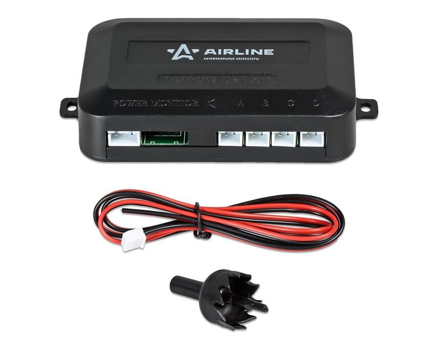 1. Микропроцессорный блок обработки сигналов – 1шт.2. Комплект сенсоров 4шт. 3. ЖК дисплей с проводом для подключения и встроенным звуковым излучателем – 1шт.4. Фреза для подготовки отверстий под сенсоры – 1шт.5. Комплект проводки для подключения – 1шт.6. Двусторонний скотч (комплект) – 1шт.
