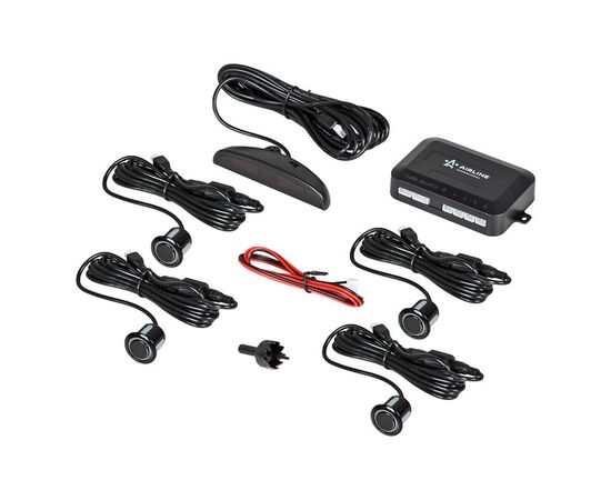 Модель APS-4L-01 оснащена датчиком измерения расстояние до приближающихся объектов, основанном на механизме ультразвукового действия. Сенсорные устройства, встроенные в систему парковочного радара, дают сигнал водителю о приближении барьера на пути автомобиля. Сообщение от парктроника поступает в виде звукового сигнала. Данная модель парковочного радара от AIRLINE оснащена четырьмя сенсорными точками, которые устанавливаются на уровне заднего бампера автомобиля. Парктроник выводит информацию на дисплей и дублирует её прерывистым звуковым сигналом. Дисплеи и датчики парковочных радаров являются высокоточными и показывают водителю, не только направление приближающегося препятствия, но и расстояние до него, если оно меньше полутора метров. В это время, с уменьшением расстояния, звуковой сигнал звучит чаще, а когда расстояние становится меньше 25 см, звуковой сигнал парктроника становится непрерывным. Датчики парковки (сенсоры) инсталлируются в бампер автомобиля. Данная модель имеет 4 датчика для установки только в задний бампер автомобиля.