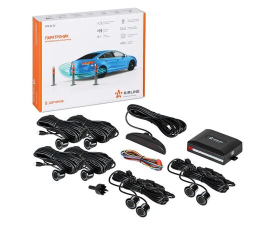 Модель APS-8L-02 помогает избежать аварийных происшествий при парковке автомобиля. Парктроник фиксирует расстояние до объекта, который находится рядом с автомобилем. Изделие устанавливает расстояние до объекта с помощью ультразвуковых волн. Такой метод определения является одним из наиболее точных и распространенных среди парковочных радаров. Парктроник выводит информацию на дисплей и дублирует её прерывистым звуковым сигналом. Дисплеи и датчики парковочных радаров являются высокоточными и показывают водителю, не только направление приближающегося препятствия, но и расстояние до него, если оно меньше полутора метров. В это время, с уменьшением расстояния, звуковой сигнал звучит чаще, а когда расстояние становится меньше 25 см, звуковой сигнал парктроника становится непрерывным. Датчики парковки (сенсоры) инсталлируются в бампер автомобиля. Данная модель имеет 8 датчиков, четыре устанавливаются в задний бампер, четыре в передний.