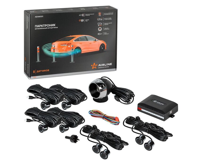 Парктроник на 8 датчиков (черные), LED дисплей PRO (AEAW001)