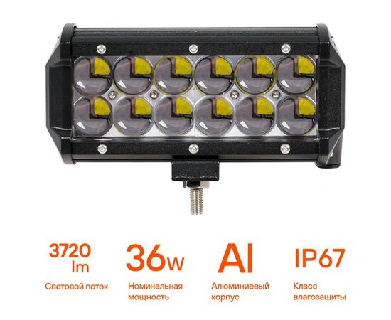 Фара светодиодная (балка) двухрядная, 12 LED 4D линза, 36W (165х78х65) 12/24V (ALED047)