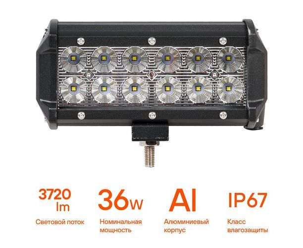 Фара светодиодная (балка) двухрядная, 12 LED рассеяный свет, 36W (165х78х65) 12/24V (ALED046)