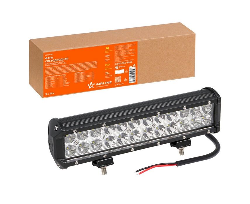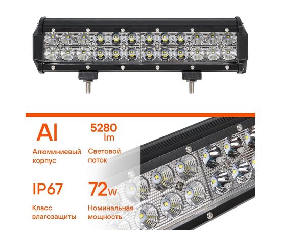 Фара светодиодная (балка) двухрядная, 24 LED комбинир. свет, 72W (300х78х65) 12/24V (ALED050)