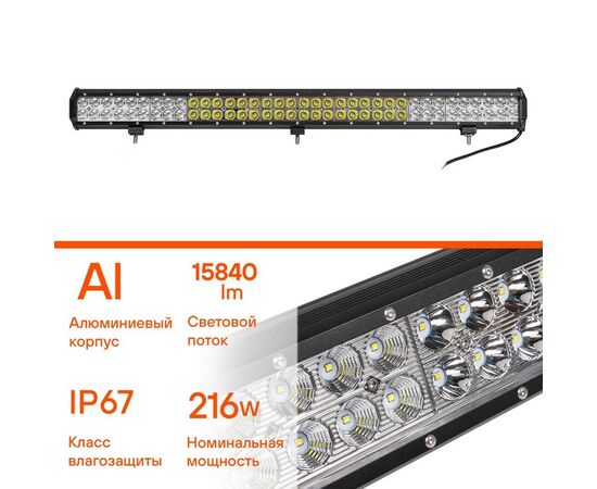 Фара светодиодная (балка) двухрядная, 72 LED комбинир. свет, 216W (845х78х65) 12/24V (ALED053)