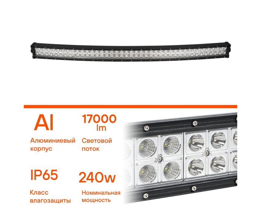 Фара светодиодная (балка) двухрядная изогн., 80LED комбин.свет, 240W, (1065х78х60) 12/24V (ALED058)