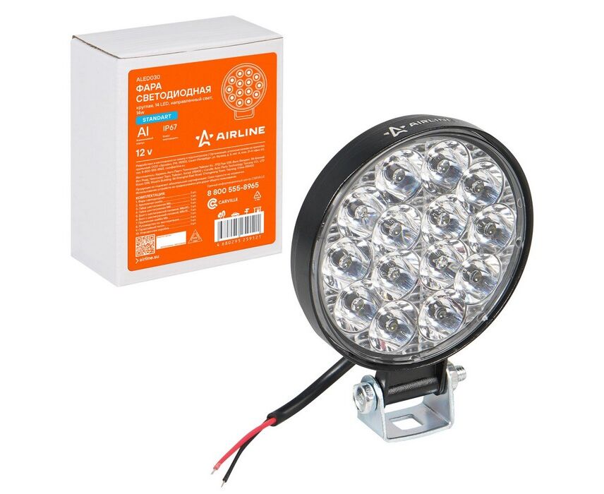 Фара светодиодная круглая, 14 LED направленный свет, 14W (83х83х22) 12V. STANDART (ALED030)