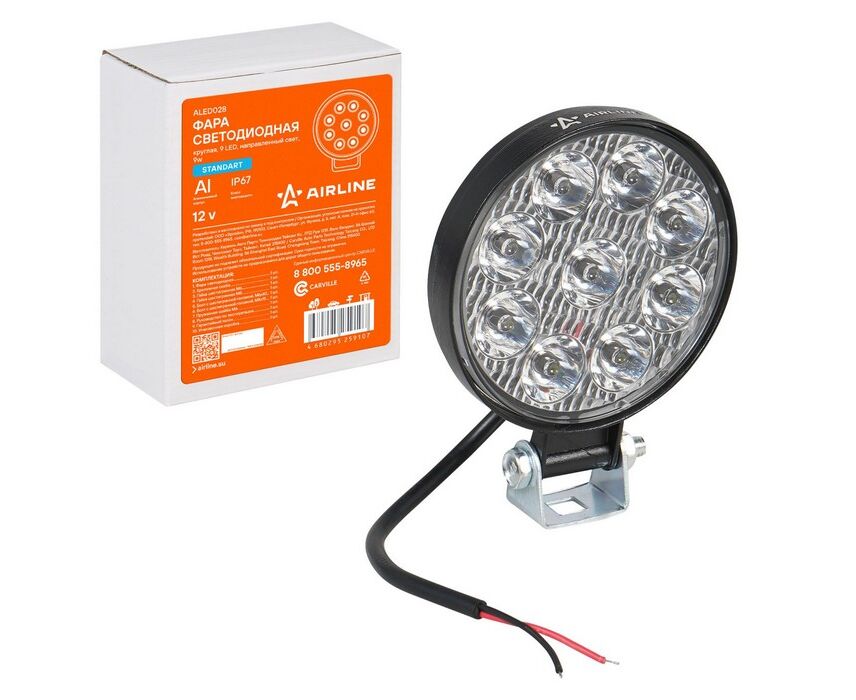 Фара светодиодная круглая, 9 LED направленный свет, 9W (83х83х22) 12V. STANDART (ALED028)