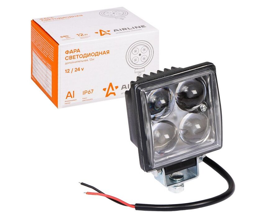 Фара светодиодная квадратная, 4 LED направленный свет, 12W (76х76х46) 12/24V (ALED001)