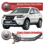 Дефлектор капота Hyundai Santa Fe II поколение, джип/suv 5 дв., рынок России (Шелкография "карбон" серебро)