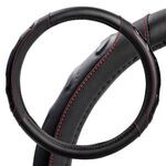 Оплетка на руль, искусст. кожа, рельефная, черная, красн. прошивка, 38 см/М (AWS-LI-22M)
