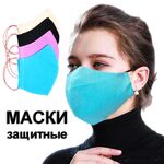 Маска для лица на резинке модельная многоразовая, 100% хлопок, темно-синий