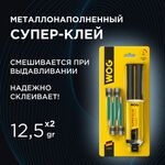 Клей металлонаполненный двухкомпонентный в шприце WOG, 12,5/12,5 гр