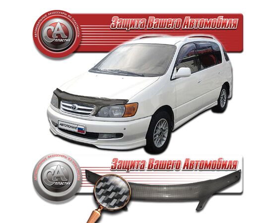 Дефлектор капота Toyota Ipsum (Шелкография "карбон" серебро)