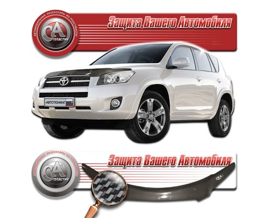 Дефлектор капота Toyota Rav4 (Шелкография "карбон" серебро)