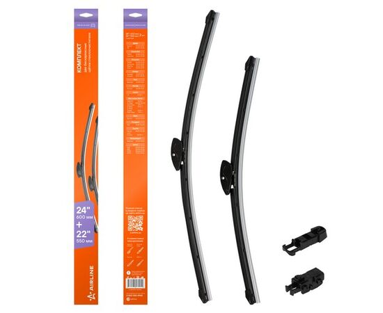 Щетки стеклоочистителя бескаркасные 600/550мм 3 адаптера