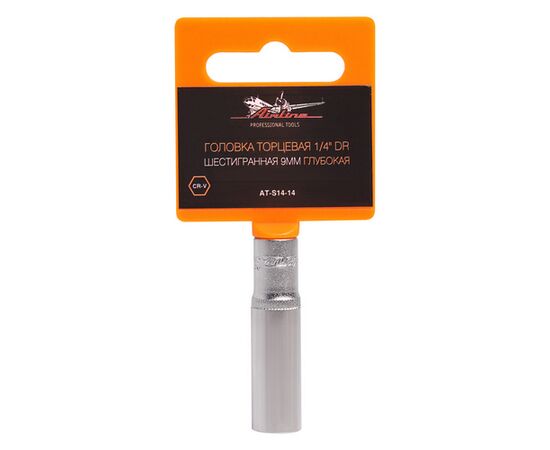 Головка торцевая 1/4" DR шестигранная 9мм глубокая в пакете (AT-S14-14)
