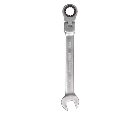 Ключ комбинированный трещоточный используется для работы с любым крепежом, особенно в труднодоступных местах. Ключ изготовлен в виде класического комбинированного гаечного ключа. На одной стороне имеется рожковый профиль, на второй стороне накидной профиль с 12ю гранями и встроенным храповым механизмом. Храповик имеет 72 зуба, что позволяет работать в очень ограниченном пространстве с углом возврата ключа всего 5°. При этом конструкция храповика изготовлена из высококачественной хром-ванадиевой стали, что обеспечивает передачу повышенного крутящего момента.