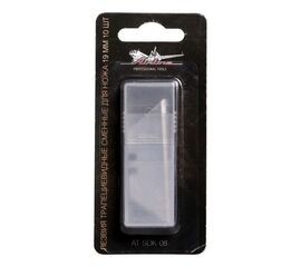 Сегментированные лезвия из высококачественной инструментальной стали с двусторонней лазерной заточкой Комплектация: Лезвия трапециевидные сменные для ножа 19мм 10шт в блистерной упаковке