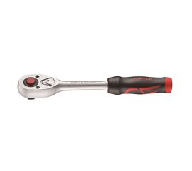 Трещотка обладает прочной рабочей частью и эргономичной рукояткой. Инструмент используется совместно с торцевыми головками для установки и снятия винтов. Трещотка имеет посадочный квадрат 1/2". Храповый механизм изделия обладает 24 зубцами.Длина - 270мм