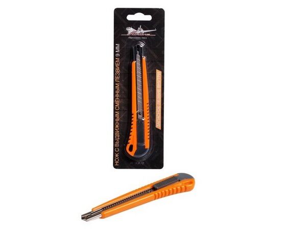 Нож с выдвижным сменным лезвием 9мм в блистерной упаковке