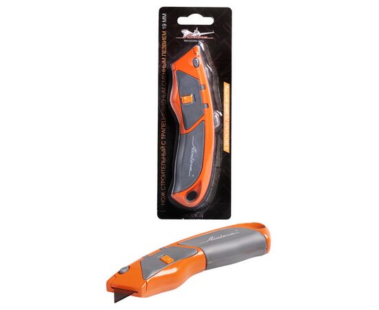 Нож строительный с трапециевидным сменным лезвием 19мм в блистерной упаковке