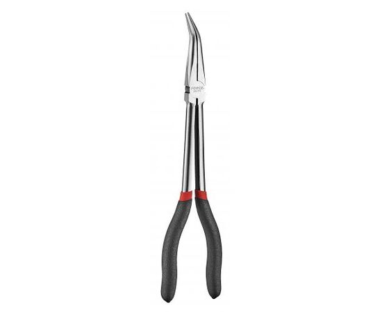 Длинногубцы гнутые предназначены для точечного захвата проволоки и прутьев, гвоздей и металлических деталей. Инструмент выполнен из прочной инструментальной стали, что придает конструкции высокую надежность. Эргономичные рукоятки выполнены из двухкомпнонентного материала, который гарантирует оптимальный захват и наименьшую усталость рук при работе.