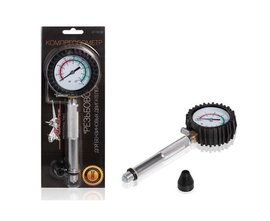 Компрессометр "Резьбовой" (бенз. двиг.) манометр в резиновом чехле, блистер (AT-CM-02)