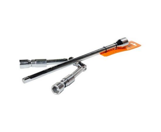 Балонный крестовой ключ, изготовленный из высокопрочной стали, является незаменимым помощником для автомобилиста, который проводит ремонт транспортного средства. Размер головок крестового ключа составляет 17*19*21*1/2 мм. Преимуществом инструмента является особая складная конструкция, которая дает возможность с удобством хранить и перевозить балонный ключ.