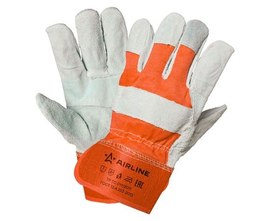 Перчатки спилковые EXPERT, комбинированные (натур.кожа/хлопок)(XL), сер./красн. (AWG-S-07)