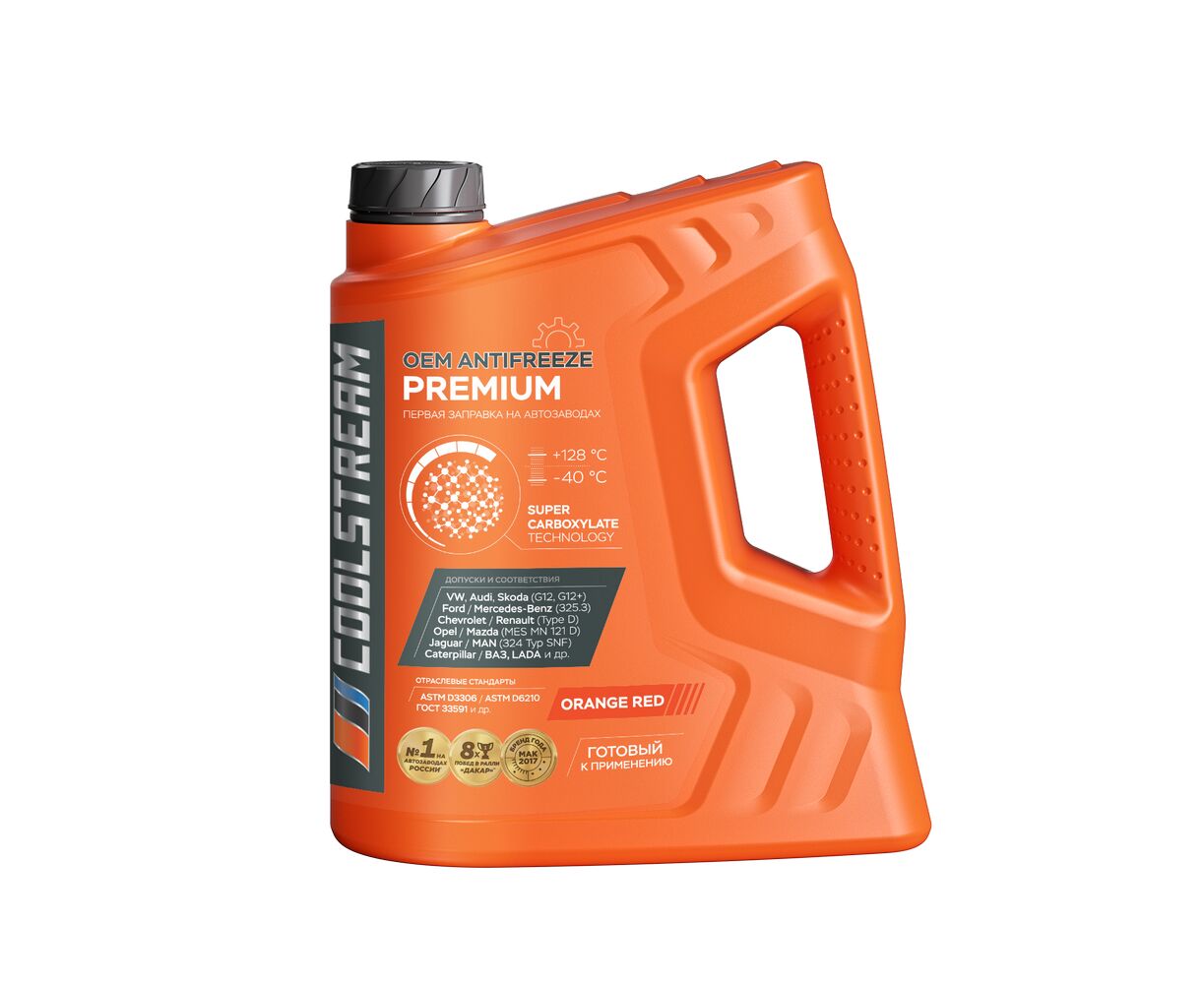 Coolstream Premium - флагманский карбоксилатный антифриз в линейке Coolstream (Super-OAT). Поставляется на автозаводы для конвейерной заправки и для сервисного обслуживания. Имеет максимальный уровень защитных свойств, что дает возможность увеличить межсервисные пробеги и избежать дорогостоящих ремонтов техники. Содержит первичный этиленгликоль высшего сорта, деминерализованную воду и сбалансированный пакет органических ингибиторов (эффективная защита от коррозии металлов и сплавов, не оказывает негативного воздействия на резиновые и пластиковые компоненты системы охлаждения). Не вспенивается, не образует накипи и канцерогенных соединений в процессе эксплуатации. Обеспечивает устойчивую работу системы охлаждения при рабочих температурах от -40 °С до +128 °C.