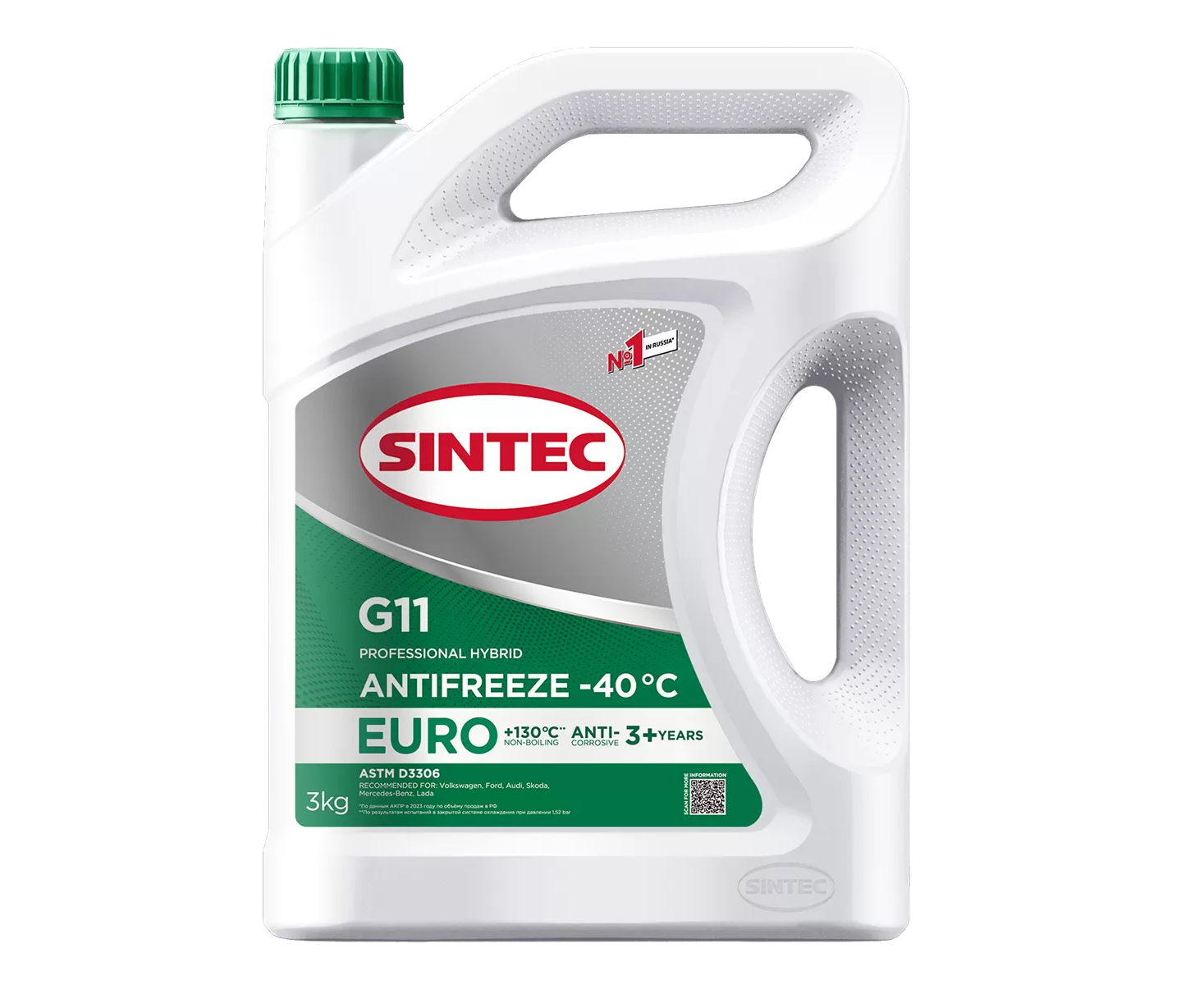 Sintec Antifreeze Euro G11 green -40 – готовая к применению высококачественная низкозамерзающая охлаждающая жидкость. Изготовлена из высококачественного моноэтиленгликоля и пакета присадок на основе гибридной технологии, специально адаптированной для российских условий эксплуатации. Обеспечивает правильный тепловой режим эксплуатации двигателя, предотвращает появление коррозии и отложений в системе охлаждения. СПЕЦИФИКАЦИИ: AFNOR NFR 15-601 ASTM D3306 ASTM D4985 BS 6580:2010 China GB 29743-2013 CUNA NC 956-16 JASO M325 JIS K 2234:2206 KSM 2142K SAE J1034 ГОСТ 28084-89 ГОСТ 33591-2012