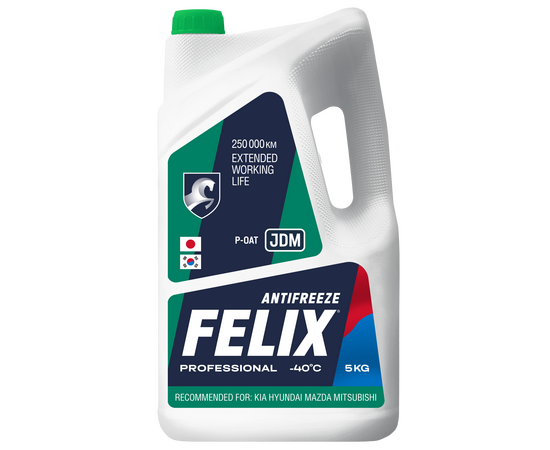Профессиональный карбоксилатный антифриз с добавлением фосфатных соединений (тип P-OAT). Предназначен для использования в любых современных системах охлаждения двигателей японских и корейских автомобилей при температуре окружающего воздуха до минус 40°С. Представляет собой смесевую композицию на основе водного раствора этиленгликоля, воды и карбоксилатного пакета стабилизирующих и антикоррозионных присадок с добавлением фосфатных соединений, а также содержащую противопенные и красящие добавки. Цвет: зеленый. Готовый к применению. Рекомендован для автомобилей: Hyundai, KIA, Mitsubishi, Mazda