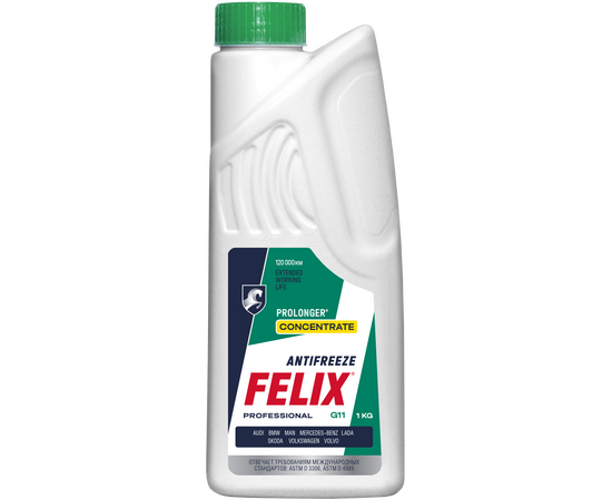 Профессиональный гибридный антифриз (тип HOAT). Соответствует требованиям стандарта G11 по классификации Volkswagen. Разработан по гибридной технологии, содержит в себе набор силикатных присадок. Отвечает требованиям спецификаций импортных автопроизводителей, международным стандартам: ASTM D 3306, 4985, SAE J 1034, BS6580: 1992, AFNOR R15-601. Совместим с оригинальными (OEM) антифризами, Срок службы антифриза – 120 000 км пробега или 3 года эксплуатации (без смешивания с другими типами охлаждающих жидкостей). Цвет: зеленый. Концентрат.