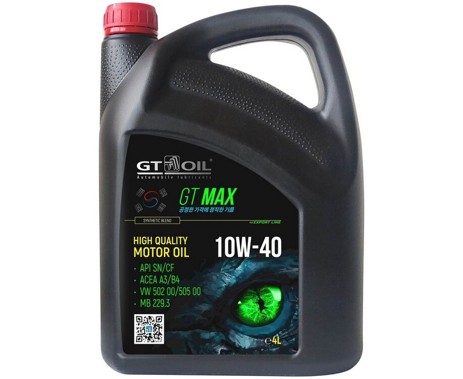 Масло GT OIL Max SAE 10W-40 API SN/CF, 4 л 8809059410004 - высококачественное полусинтетическое моторное масло для современных высокофорсированных бензиновых и дизельных двигателей (с турбонаддувом и без) легковых автомобилей, внедорожников, микроавтобусов и легких грузовиков. Гарантирует максимальную защиту двигателя от износа в жестких условиях городского цикла и в условиях повышенных нагрузок. Высокое содержание нейтрализующих присадок позволяет использовать топливо с повышенным содержанием серы (до 500 ppm).