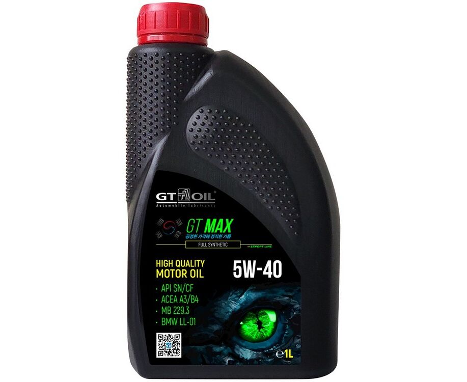 Моторное масло GT OIL Max SAE 5W-40 API SN/CF, 1 л 8809059409008 - высококачественное полностью синтетическое моторное масло для современных высокофорсированных бензиновых и дизельных двигателей (с турбонаддувом и без) легковых автомобилей, внедорожников, микроавтобусов и легких грузовиков. Максимальная защита двигателя от износа в жестких условиях городского цикла и в условиях повышенных нагрузок. Высокое содержание нейтрализующих присадок позволяет использовать топливо с повышенным содержанием серы (до 500 ppm).