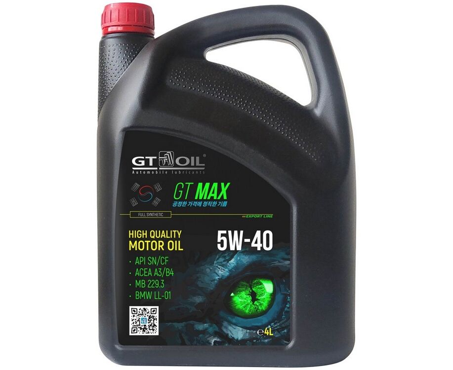 Масло GT OIL Max SAE 5W-40 API SN/CF, 4 л 8809059409015 - высококачественное моторное масло для современных высокофорсированных бензиновых и дизельных двигателей (с турбонаддувом и без) легковых автомобилей, внедорожников, микроавтобусов и легких грузовиков. Максимальная защита двигателя от износа в жестких условиях городского цикла и в условиях повышенных нагрузок. Высокое содержание нейтрализующих присадок позволяет использовать топливо с повышенным содержанием серы (до 500 ppm). Рекомендовано к всесезонному применению в бензиновых и дизельных двигателях (без фильтров сажевых частиц - DPF) автомобилей Mercedes-Benz, BMW, Audi, Volkswagen, Skoda, Porsche, Hyundai, KIA, Toyota, Honda, Nissan, Mitsubishi, Renault, Peugeot, Citroen, FIAT, LADA, GAZ, UAZ. Лёгкие грузовики, соответствующие стандартам и требованиям EURO IV и EURO V.
