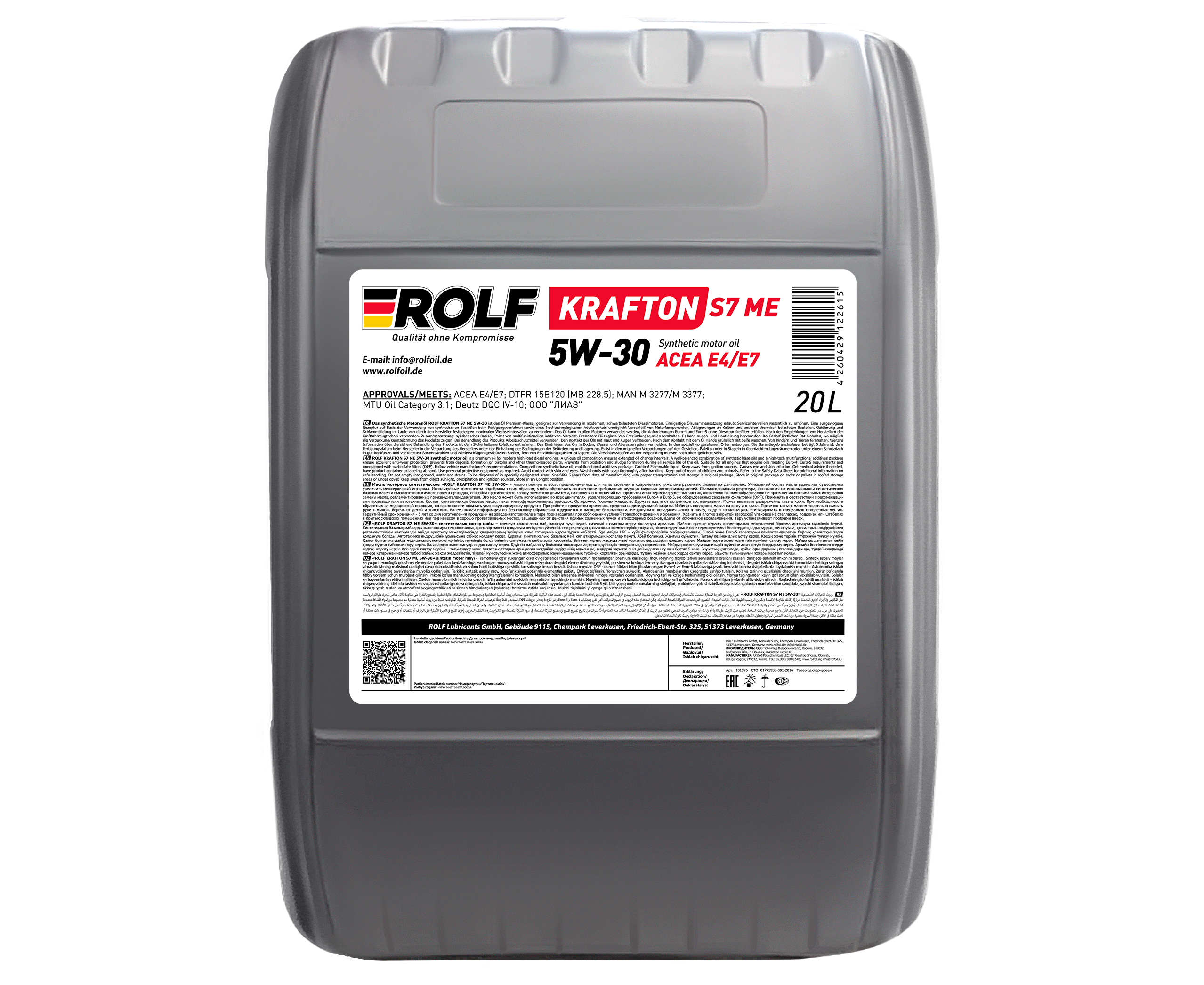 Масло моторное синтетическое Krafton S7 ME 5W30 CI-4, E6/E7 пластик 20л