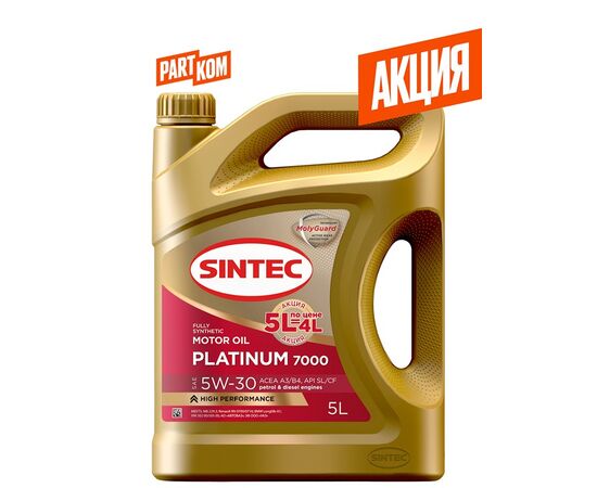 Масло моторное синтетическое Platinum 7000 5W30 SL/CF, A3/B4 5л по цене 4л