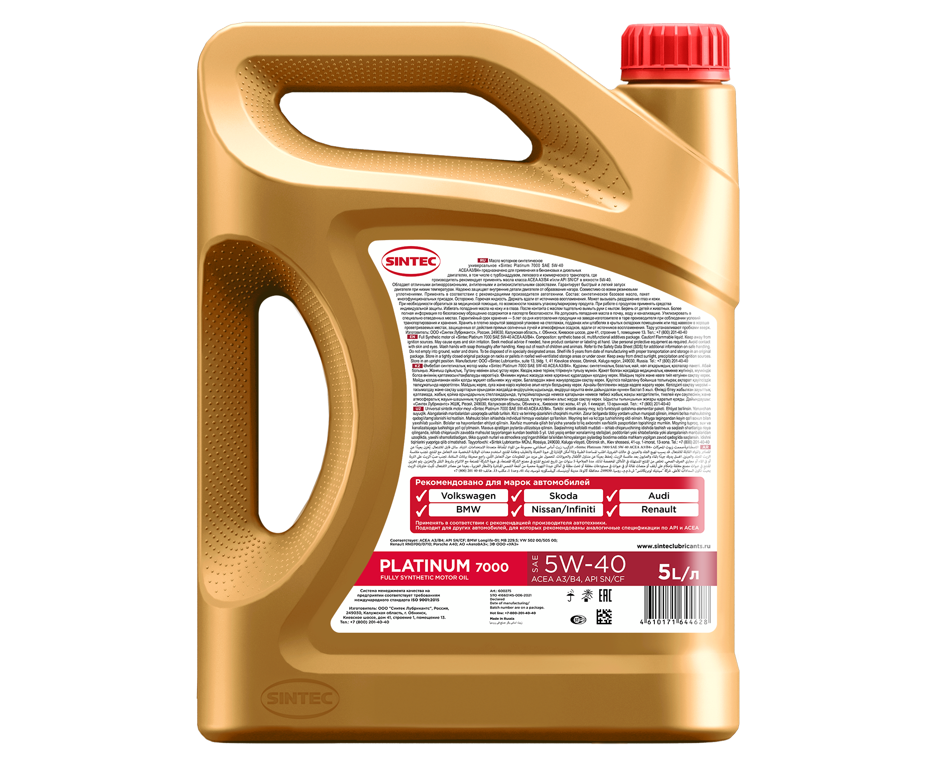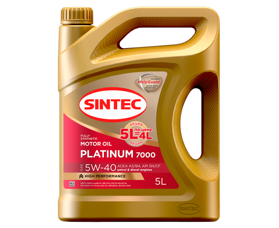 Масло моторное синтетическое Platinum 7000 5W40 SN/CF, A3/B4 5л по цене 4л
