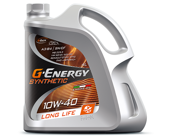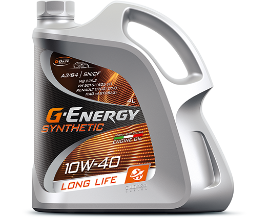 G-Energy Synthetic Long Life 10W-40 – синтетическое моторное масло на основе базовых компонентов G-Base для бензиновых и дизельных двигателей автомобилей. Благодаря надёжной защите деталей от износа и низкому расходу на угар позволяет увеличить интервалы между заменами масла и сохранить ресурс двигателя по сравнению с маслами на минеральной и полусинтетической основе класса API SL и ниже. Поддерживает чистоту двигателя.ПРИМЕНЕНИЕ